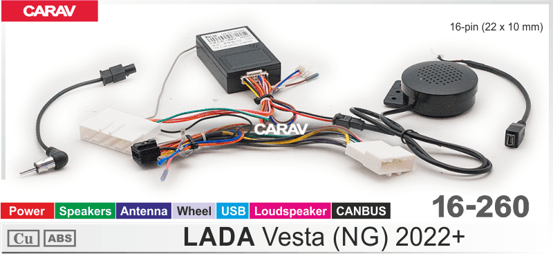 КОМПЛЕКТ ПРОВОДОВ на LADA Vesta (NG) 2022+ / Power+Speakers+Antenna+Wheel+USB+CANBUS CARAV 16-260