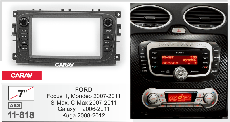 МОНТАЖНАЯ РАМКА CARAV 11-818: 2-DIN (7-inch Android) на FORD Focus, Mondeo, S-Max, C-Max 2007-2011; Galaxy 2006-2011; Kuga 2008-2012