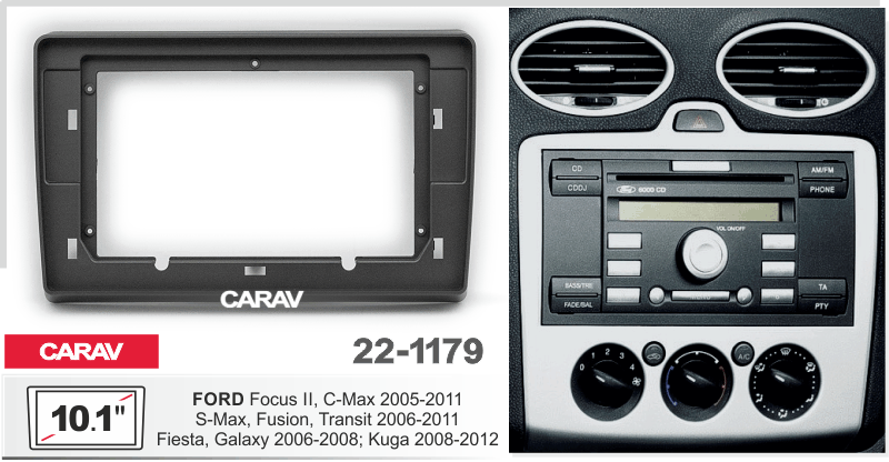 CARAV 22-1179: 10.1" / 250:241 x 146 mm / FORD Focus II, C-Max 2005-2011; S-Max, Fusion, Transit 2006-2011; Fiesta, Galaxy 2006-2008; Kuga 2008-2012