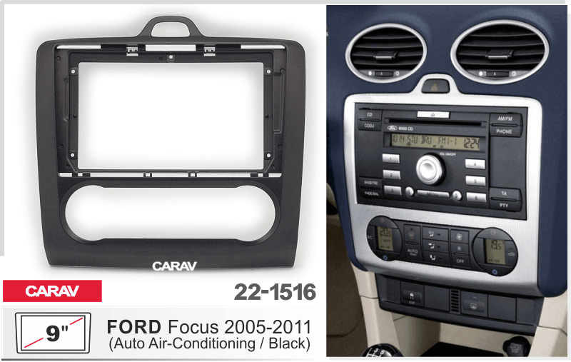 CARAV 22-1516: 9" / 230:220 x 130 mm / FORD Focus 2005-2011 (только для а/м с климат контролем) / черный цвет