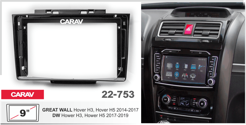 ПЕРЕХОДНАЯ РАМКА GREAT WALL Hover H3 2014+; Hover H5 2012+ 9" 22-753
