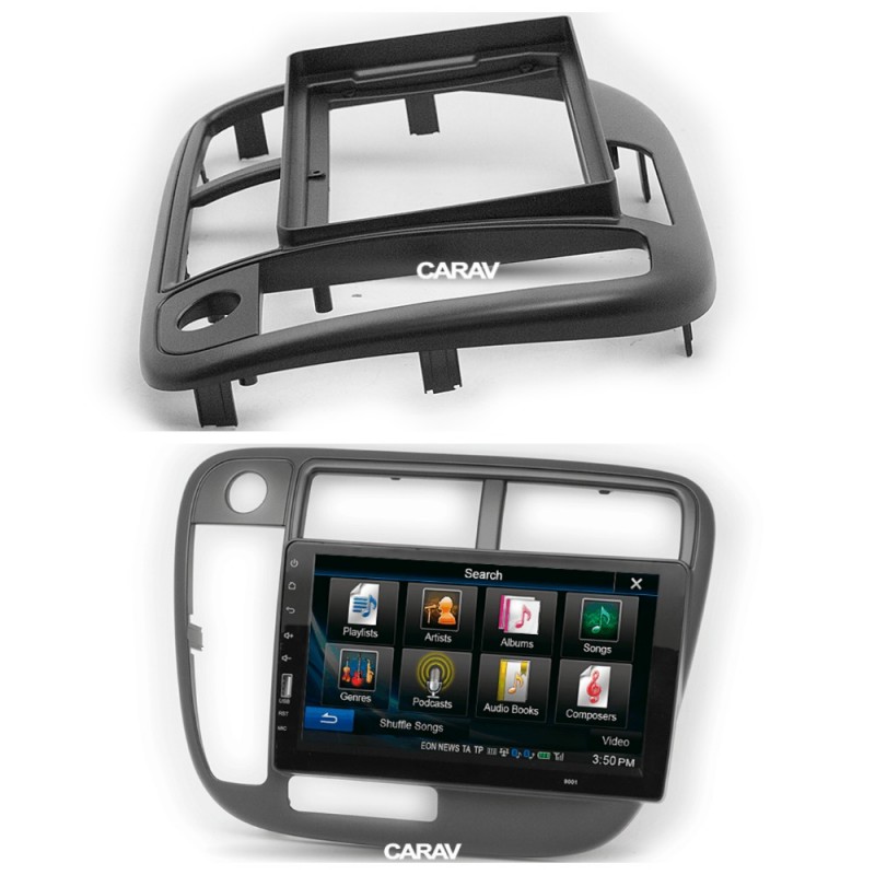 Переходная рамка CARAV 22-1073 предназначена для установки универсальных магнитол 9" с монтажным размером 230:220 x 130 mm вместо штатных на автомобиль: HONDA Civic 1995-2001. левый руль