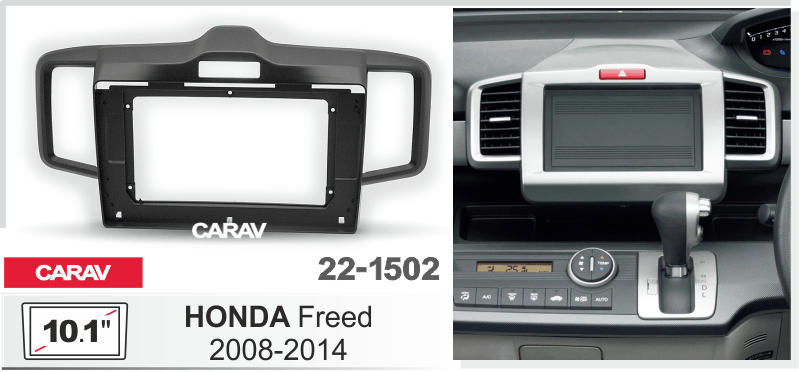 Переходная рамка Carav 22-1502 предназначена для установки 10.1" магнитолы с монтажным размером 250:241x146мм вместо штатной мультимедиа в автомобили HONDA Freed 2008-2016 (цвет черный)