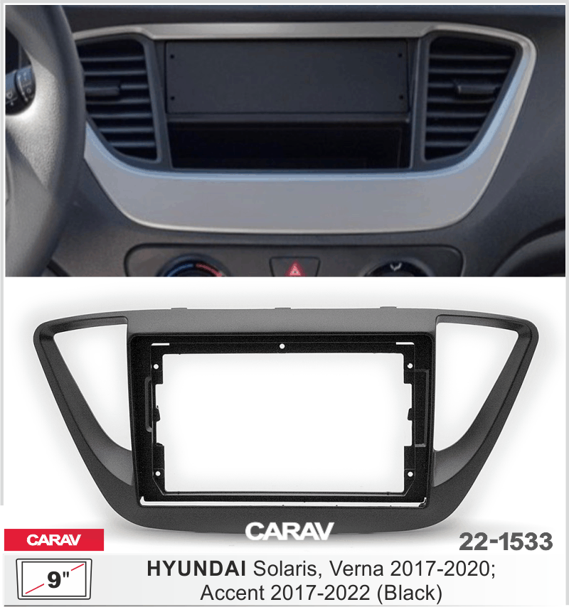 CARAV 22-1533: 9" / 230:220 x 130 mm / HYUNDAI Solaris, Verna 2017-2020; Accent 2017-2022 (черный цвет)