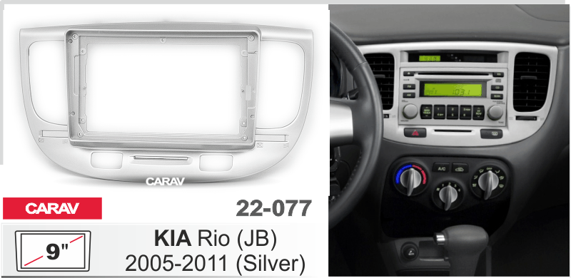 CARAV 22-077: 9" / 230:220 x 130 mm / KIA Rio (JB) 2005-2011 (серебристый цвет)