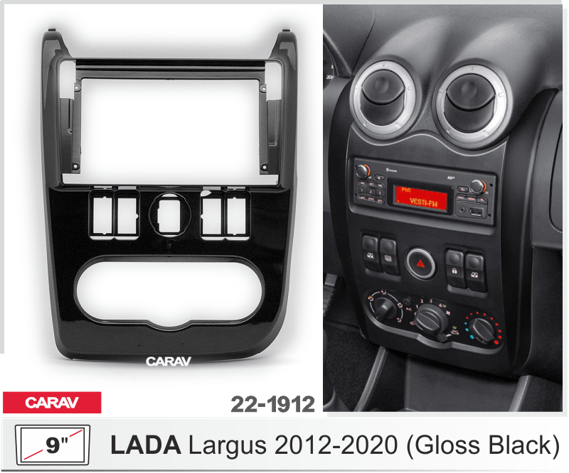 CARAV 22-1912: 9" / 230:220 x 130 mm / ЛАДА Ларгус 2012-2020 / LADA Largus 2012-2020 (глянцевый черный цвет)