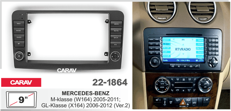 CARAV 22-1864: 9" / 230:220 x 130 mm / MERCEDES-BENZ M-klasse (W164) 2005-2011; GL-Klasse (X164) 2006-2012 / Ver.2