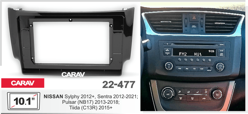 CARAV 22-477: 10.1" / 250:241 x 146 mm / NISSAN Sylphy, Sentra 2012+; Pulsar (NB17) 2013+; Tiida (C13R) 2015