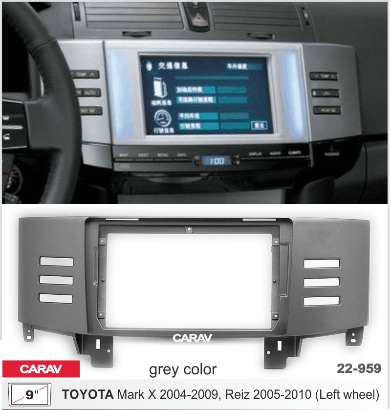 ПЕРЕХОДНАЯ РАМКА TOYOTA MARK X 2004-09, REIZ 2005-10 (руль слева/серый) 9" 22-959