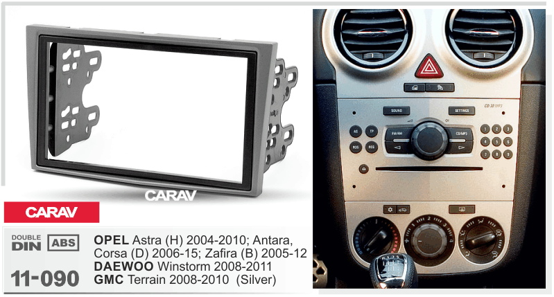 CARAV 11-090: 2 DIN / 173 x 98 mm / 178 x 102 mm / OPEL Astra (H) 2004-2010; Antara, Corsa (D) 2006-2015; Zafira (B) 2005-2012 / DAEWOO Winstorm 2008-2011 / GMC Terrain 2008-2010