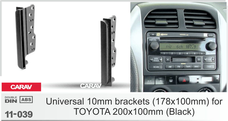 CARAV 11-039: 2-DIN универсальные 10mm вставки (178x100mm) для а/м штатных головных утройств TOYOTA размером 200x100mm / 2 штуки / черный цвет